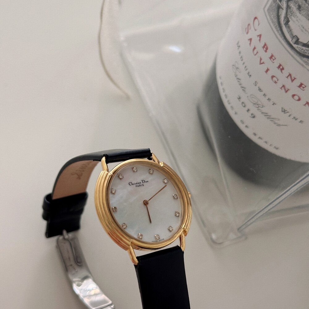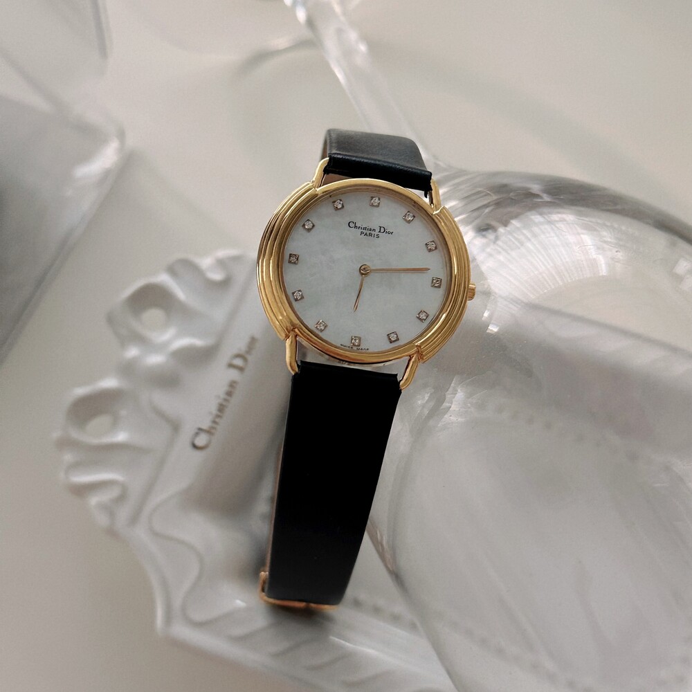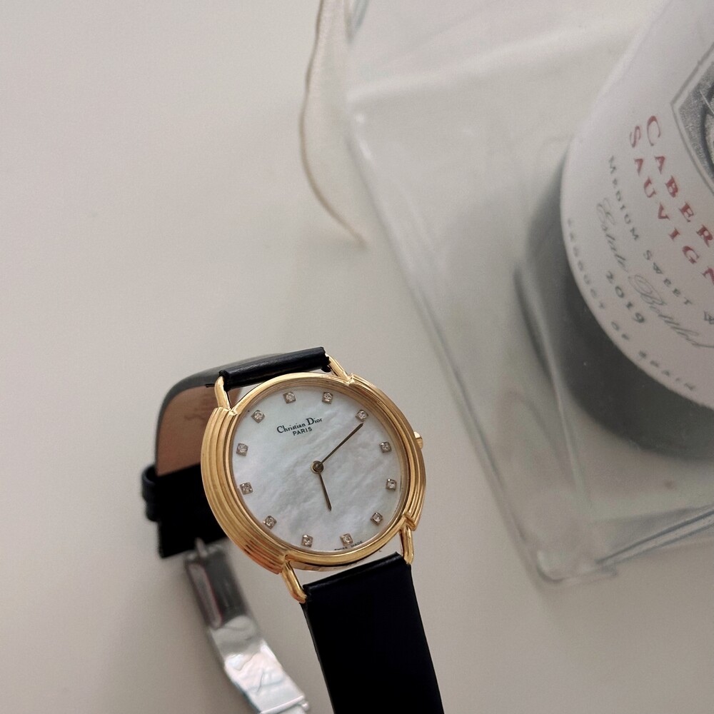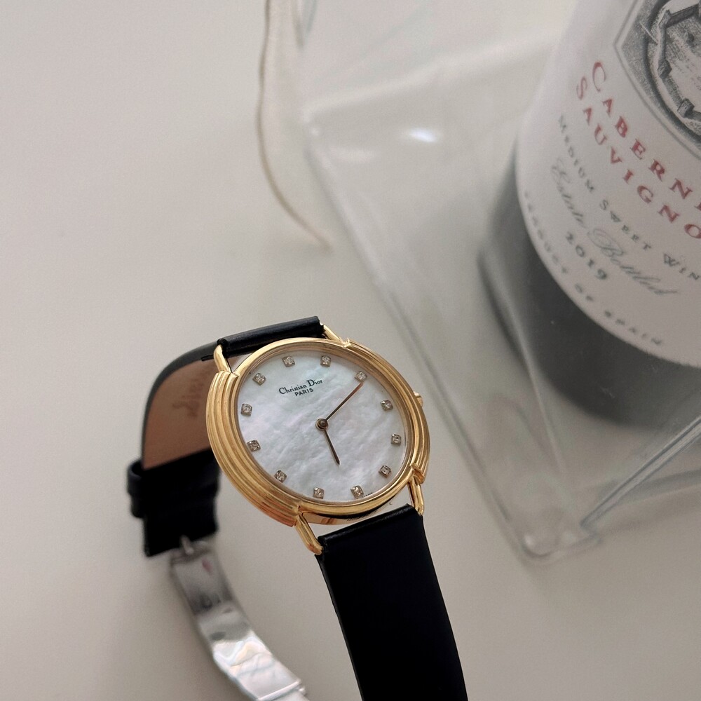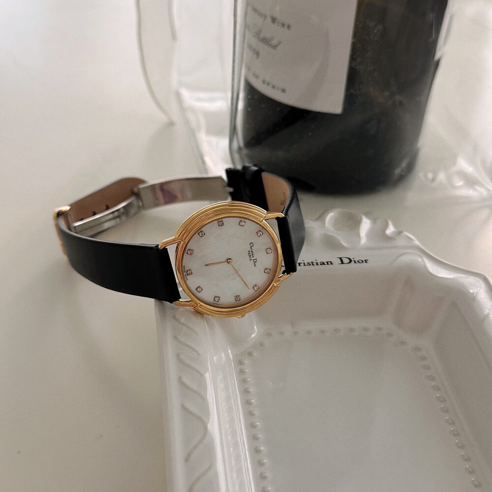 빈티지 디올 자개&12p 다이아 CD 버클 시계