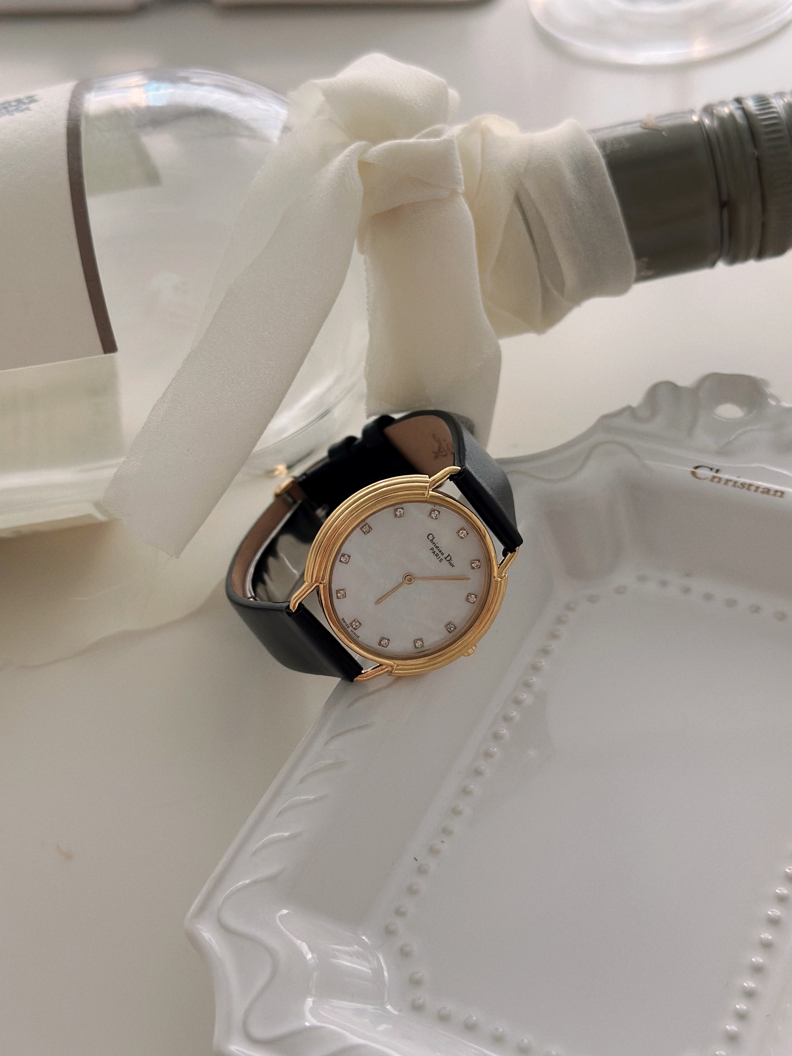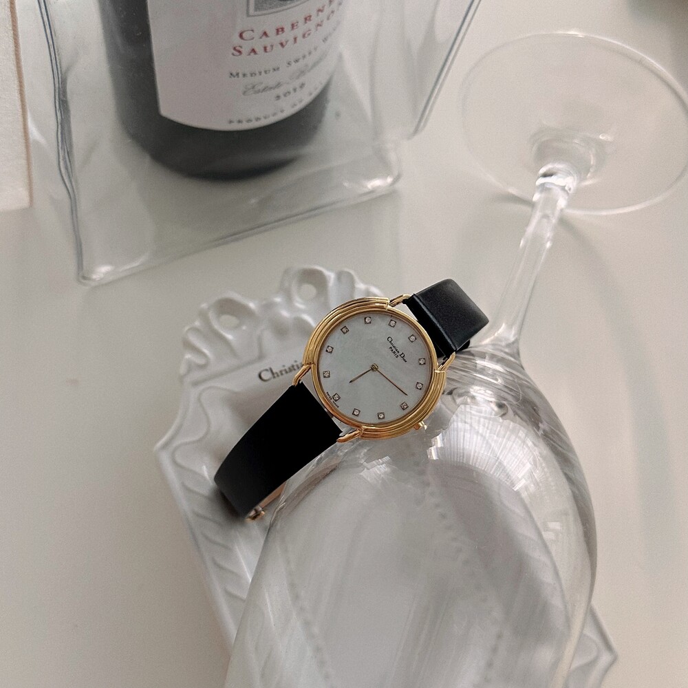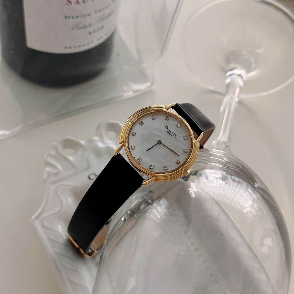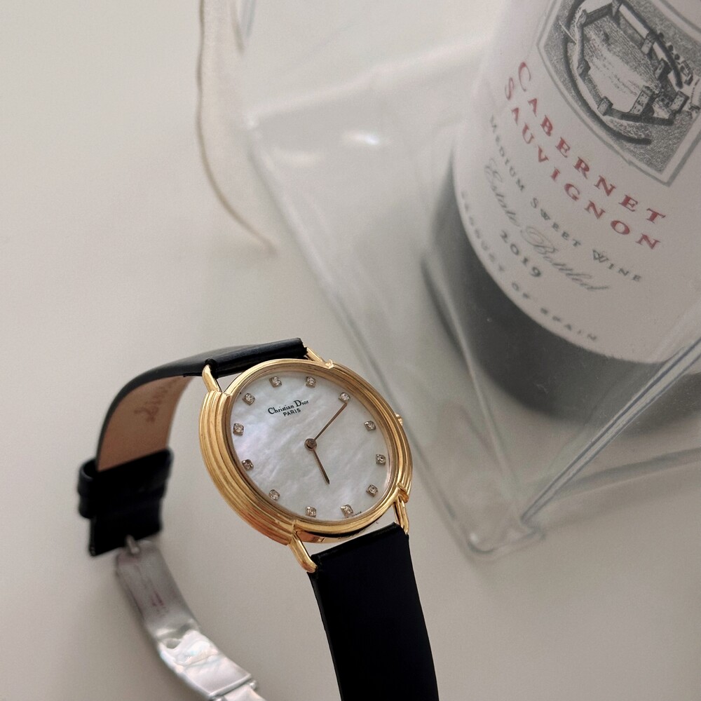 빈티지 디올 자개&12p 다이아 CD 버클 시계