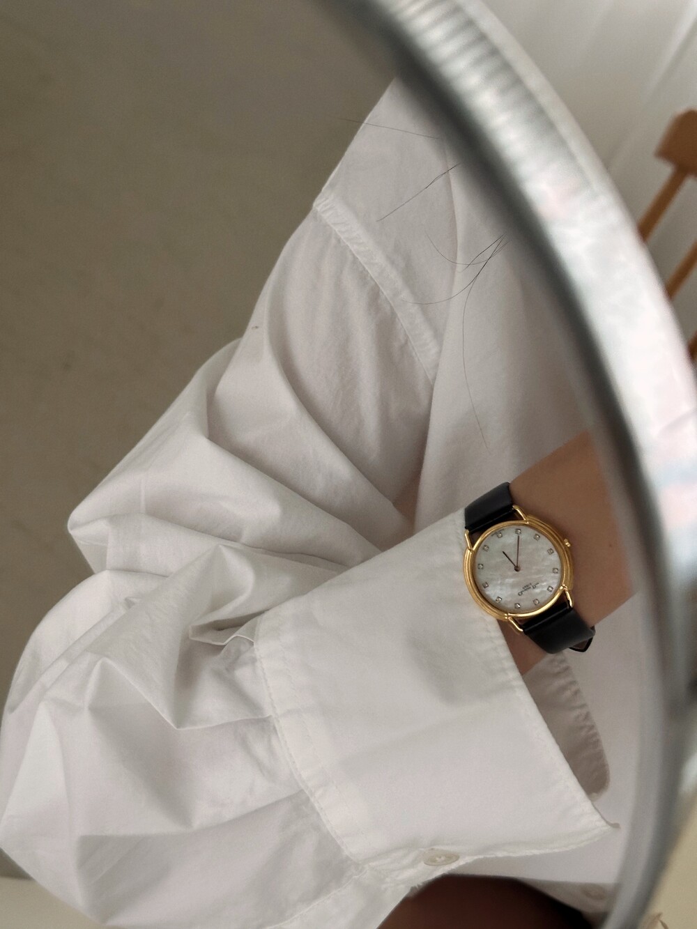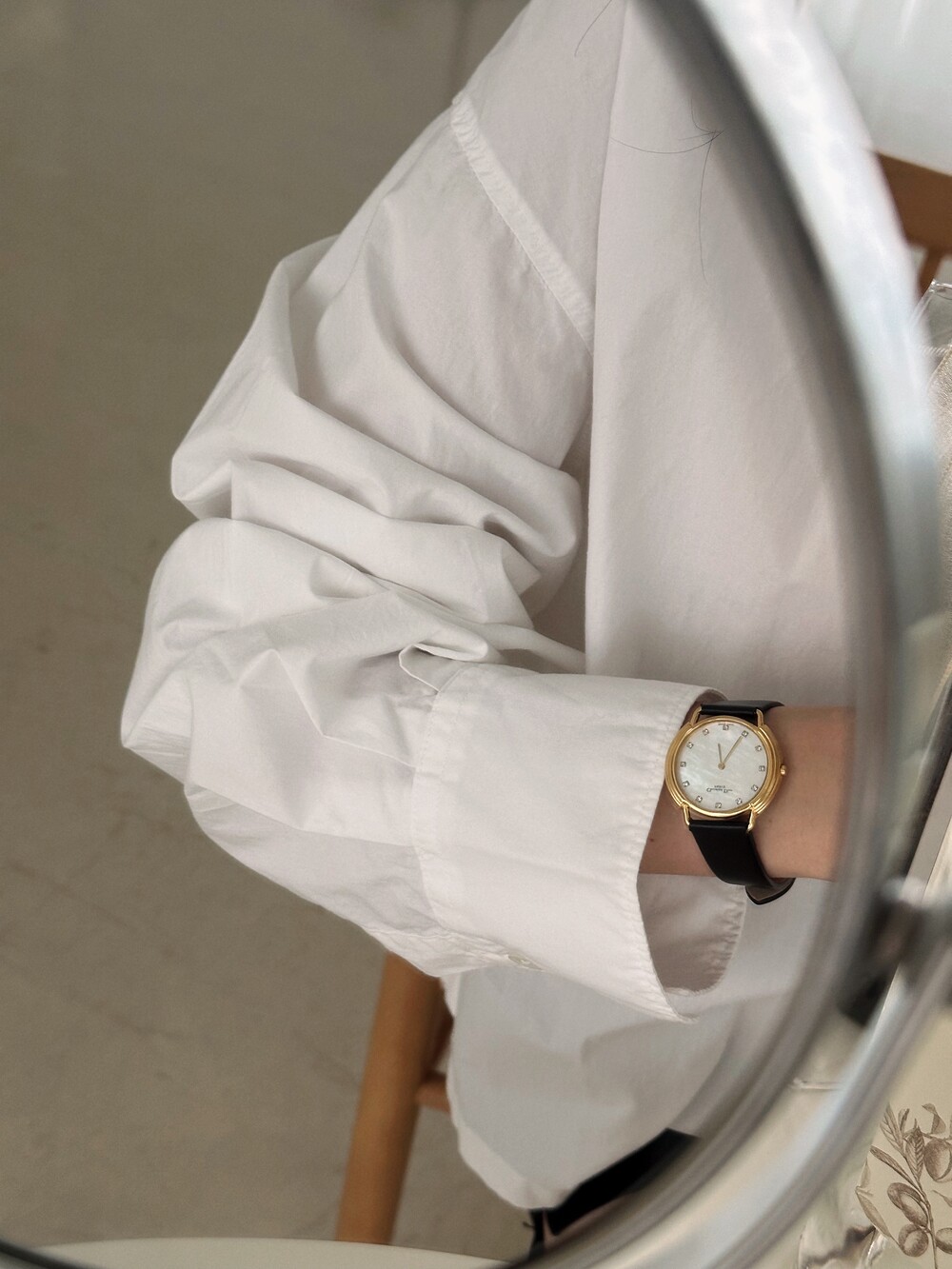 오로라 빛이 감도는 자개 다이얼이 포인트인 CD 버클 시계 입니다✨