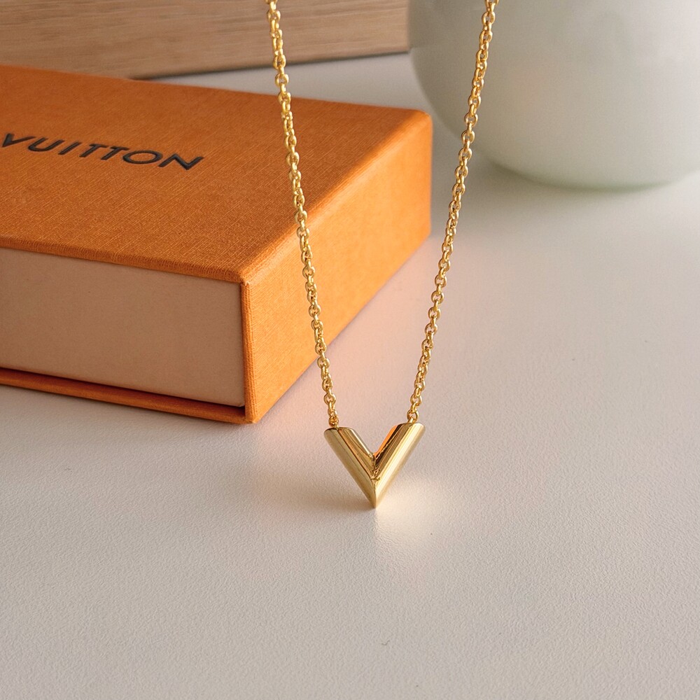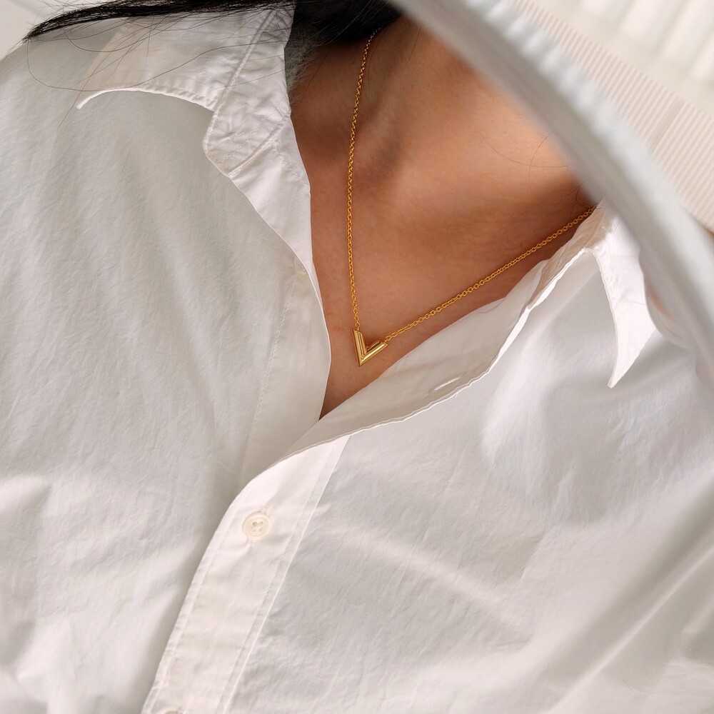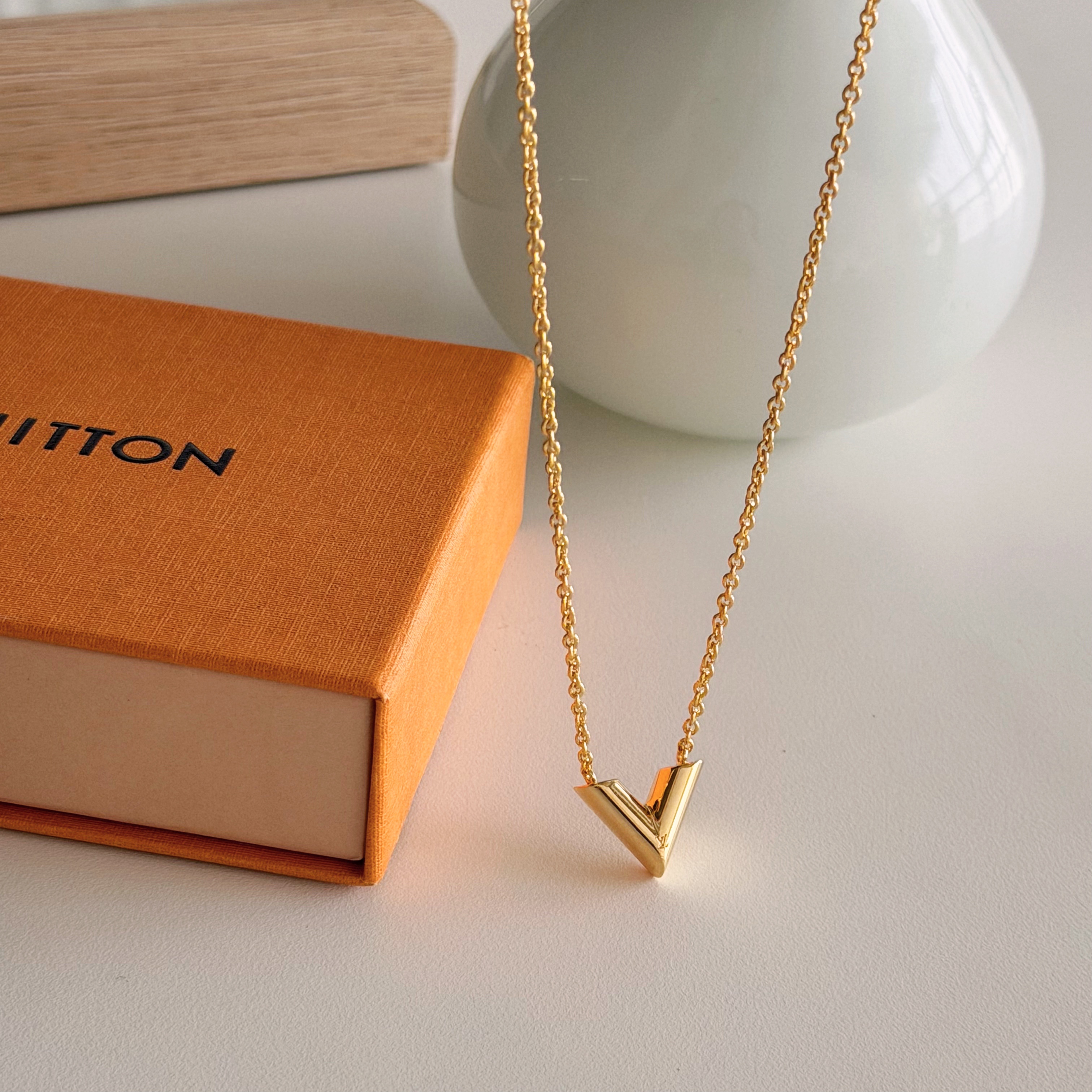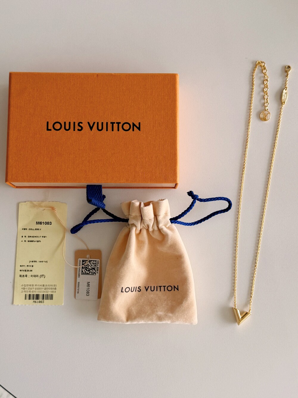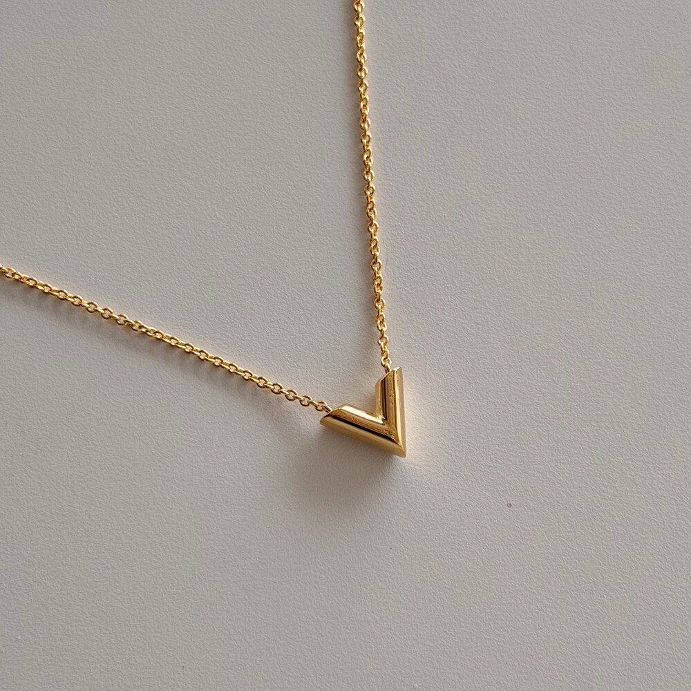 심플한 V 팬던트 가운데에 LV 각인이 새겨져있으며,