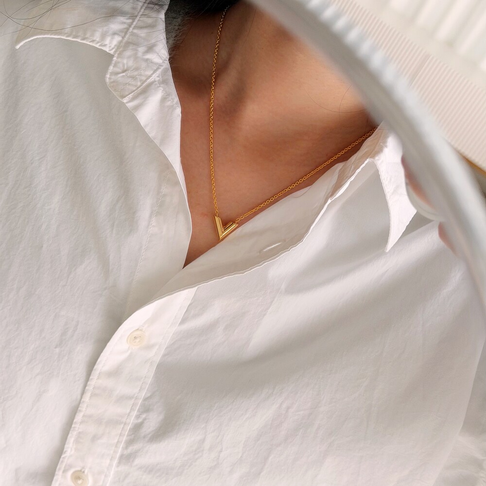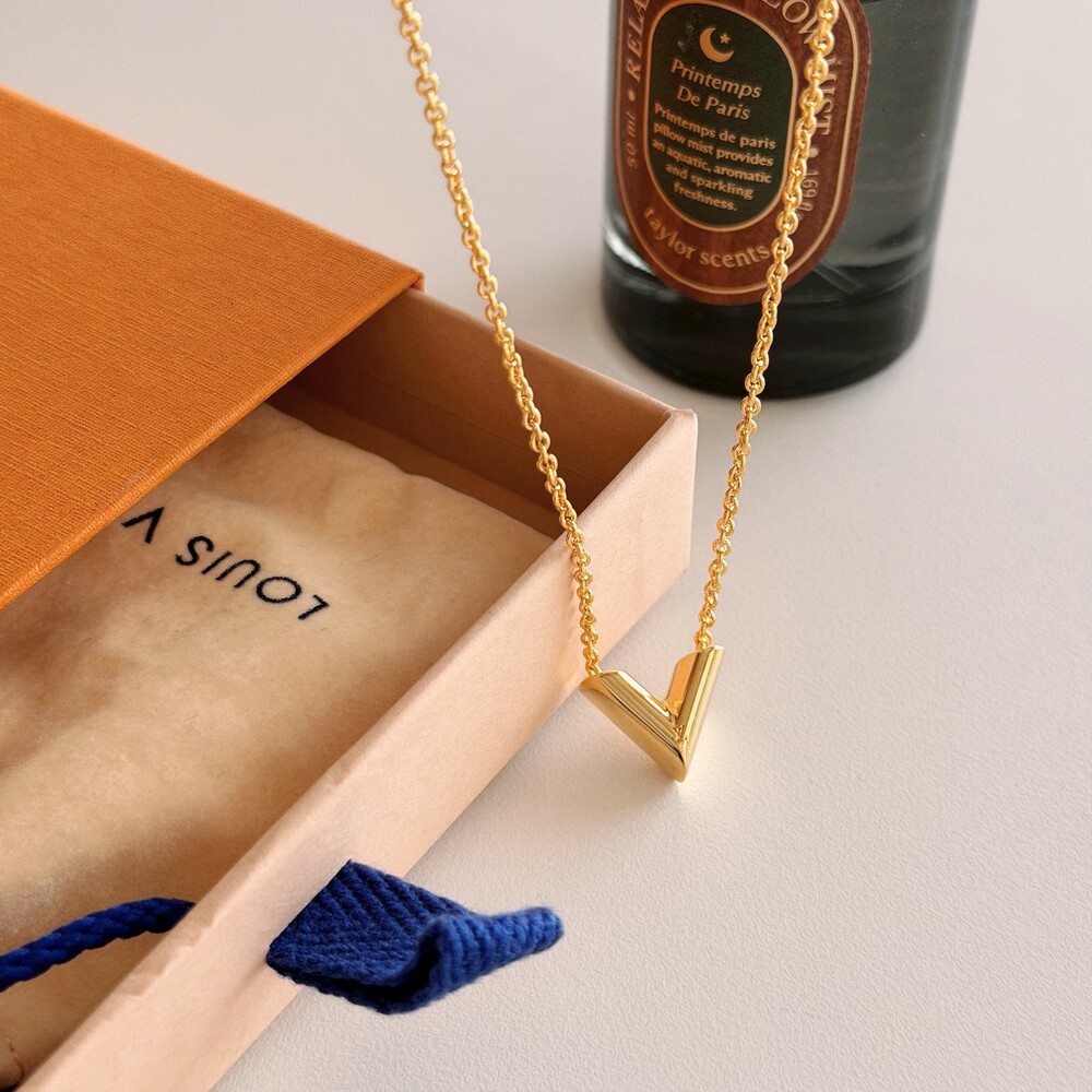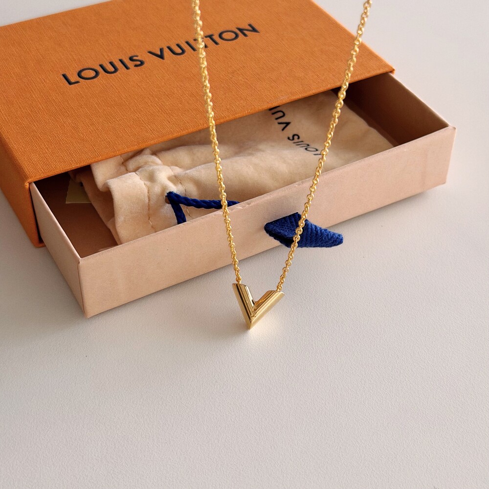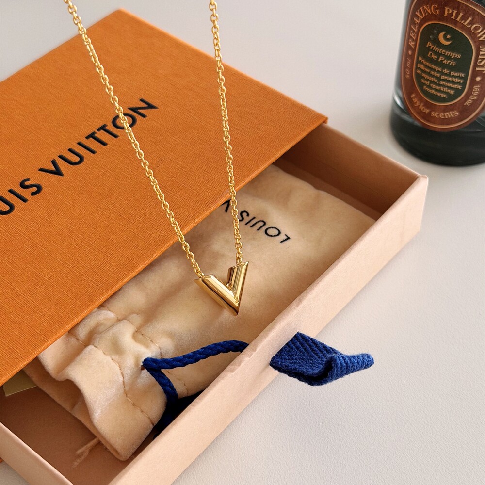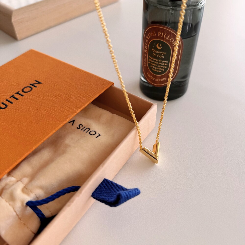 심플한 V 팬던트 가운데에 LV 각인이 새겨져있으며,