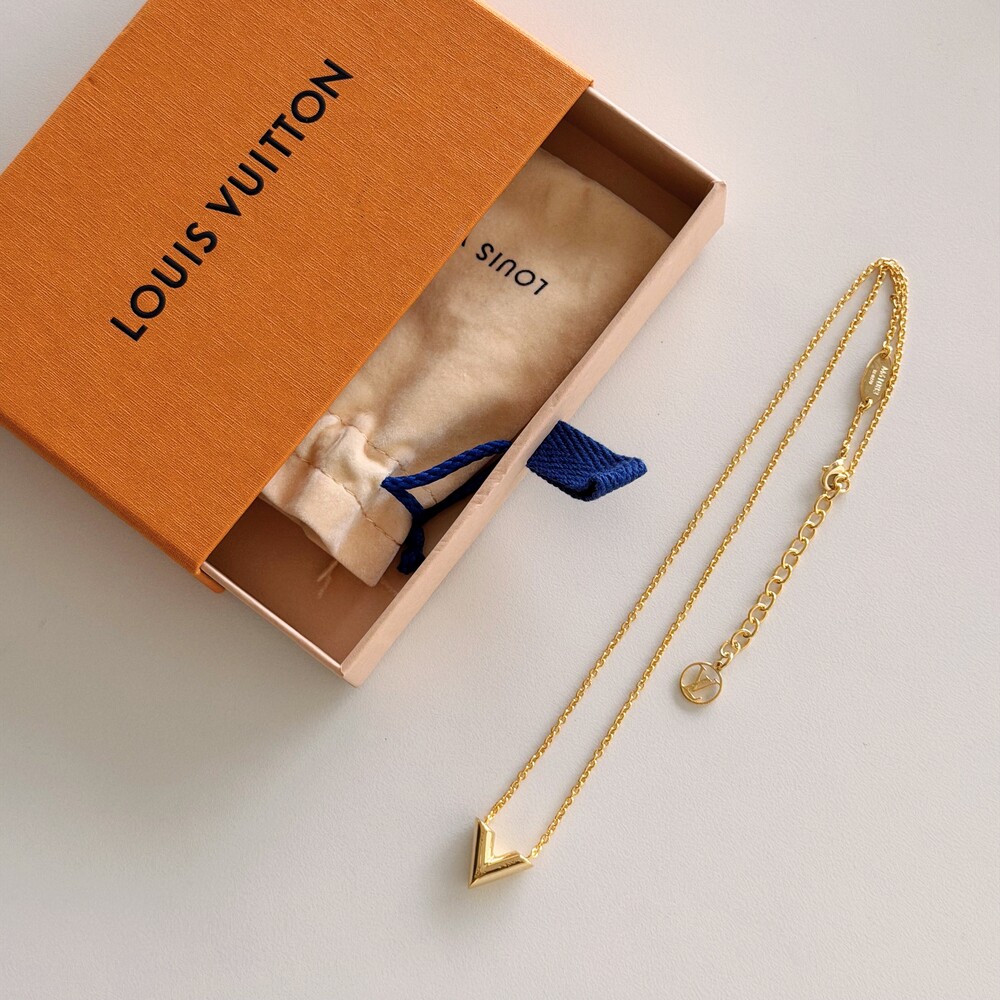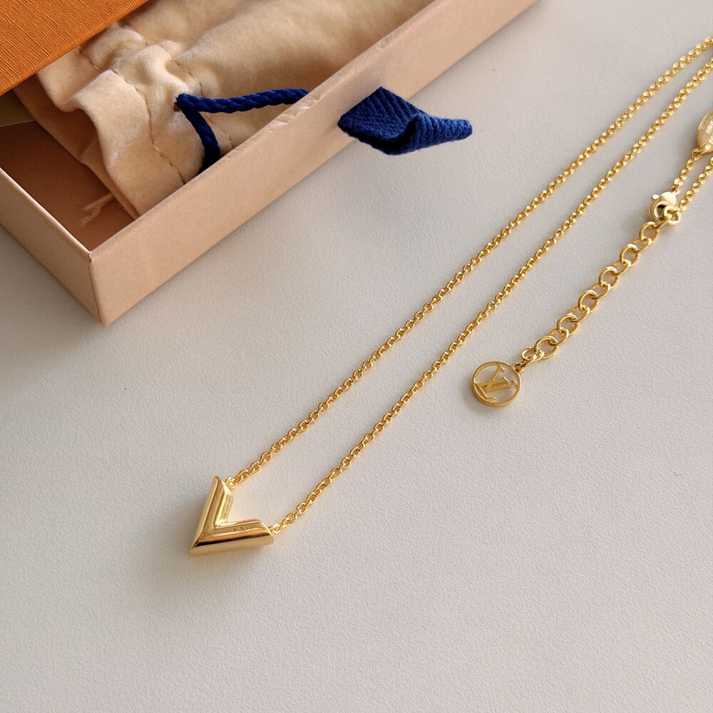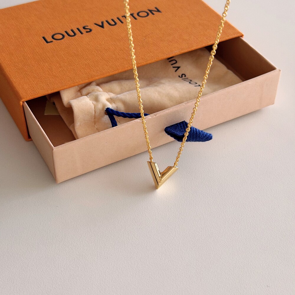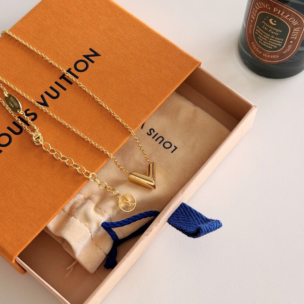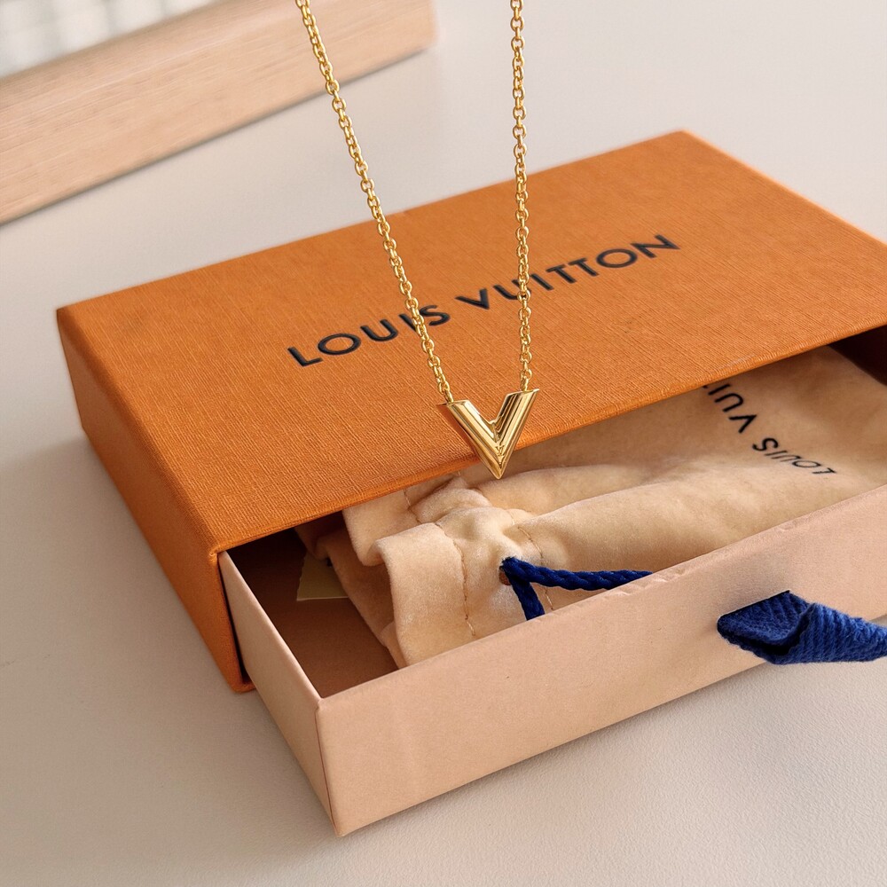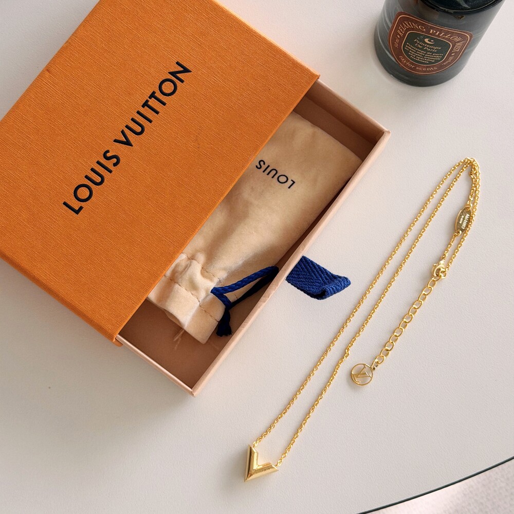 심플한 V 팬던트 가운데에 LV 각인이 새겨져있으며,
