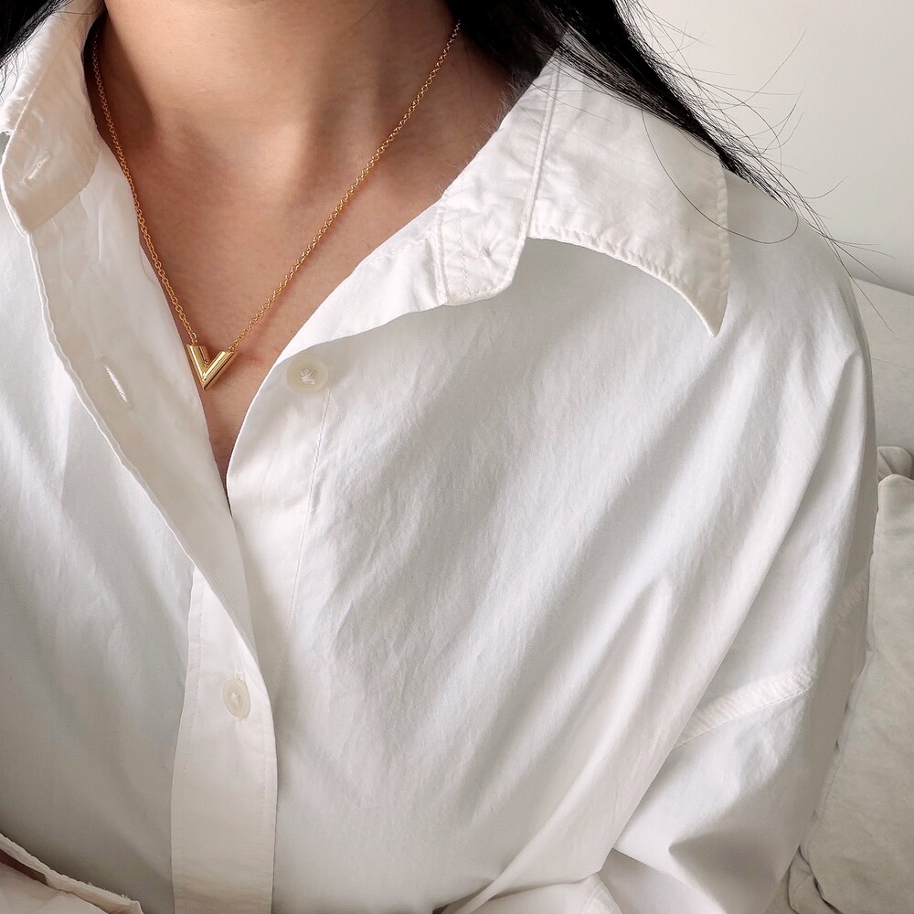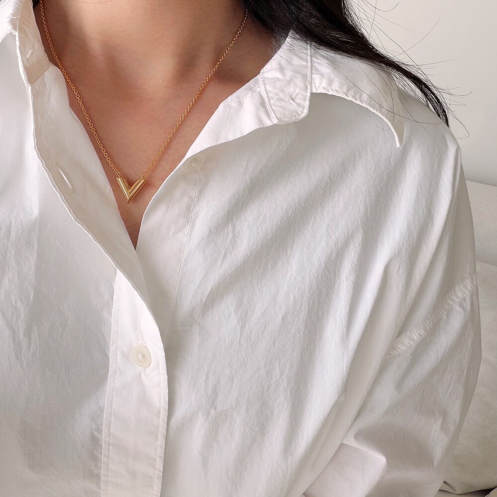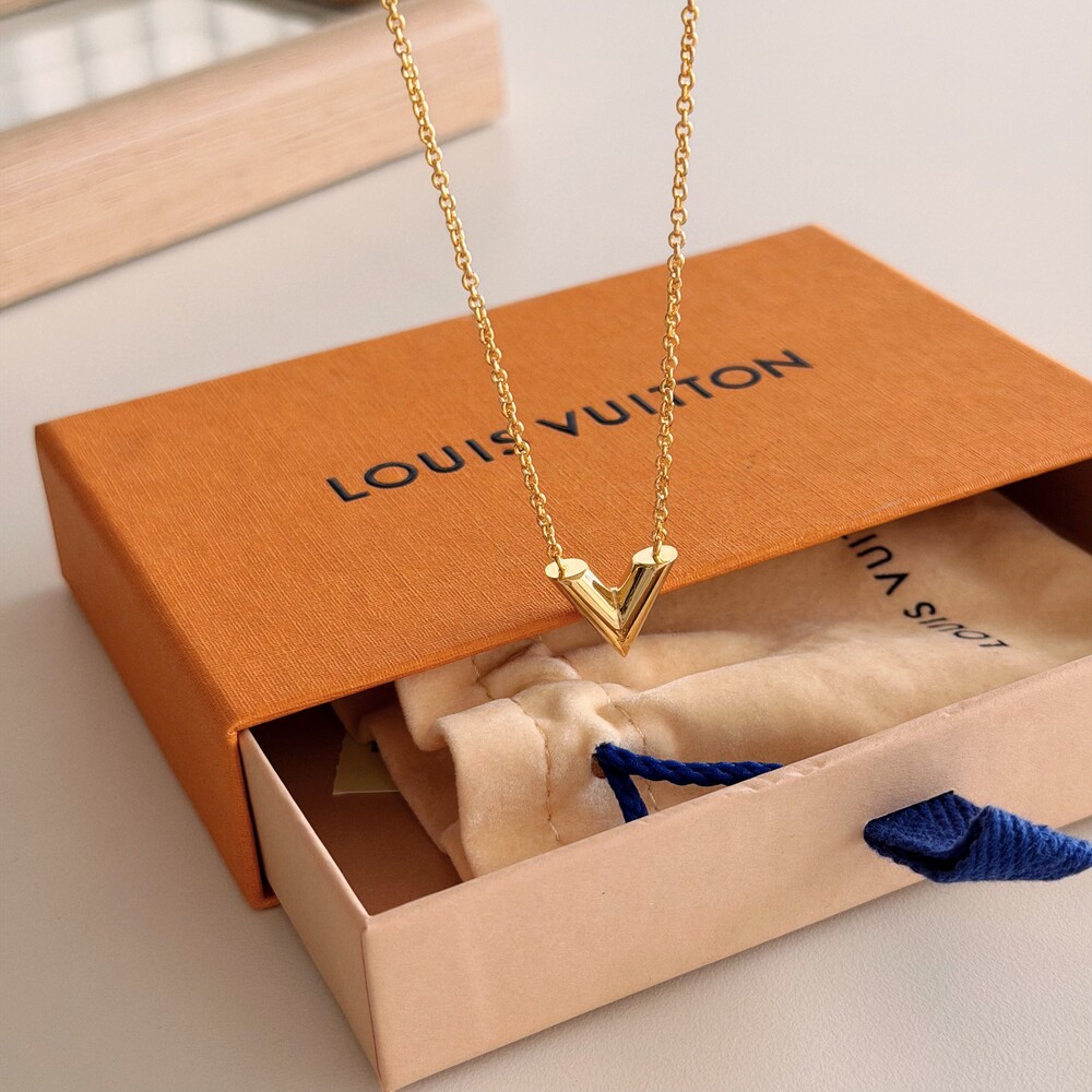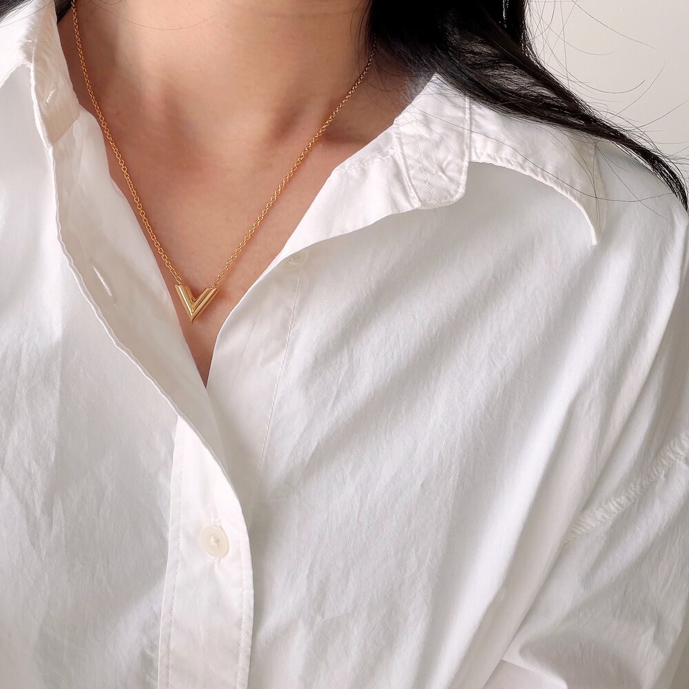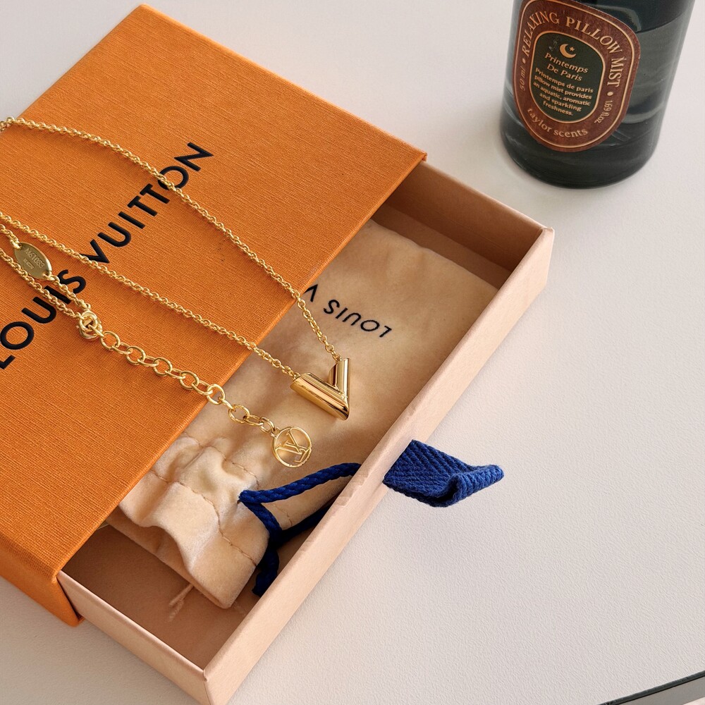 심플한 V 팬던트 가운데에 LV 각인이 새겨져있으며,