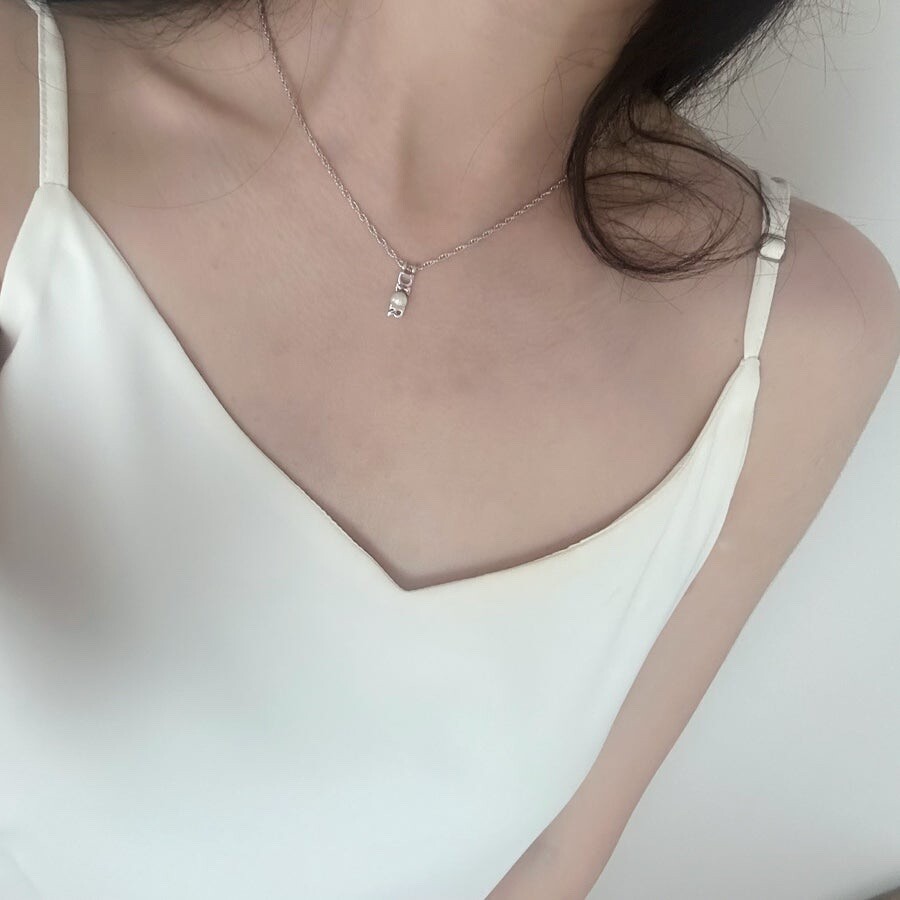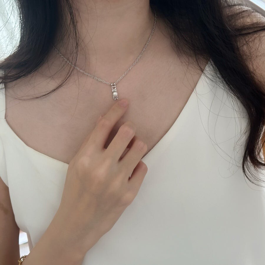 세로형 로고 플레이트에 세팅 된 진주가 포인트이며 🐚❤︎