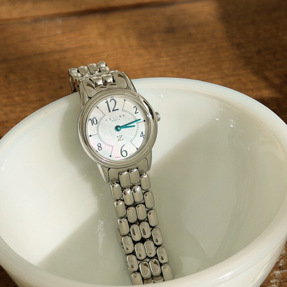 빈티지 셀린느 화이트 자개 트리오페 시계
