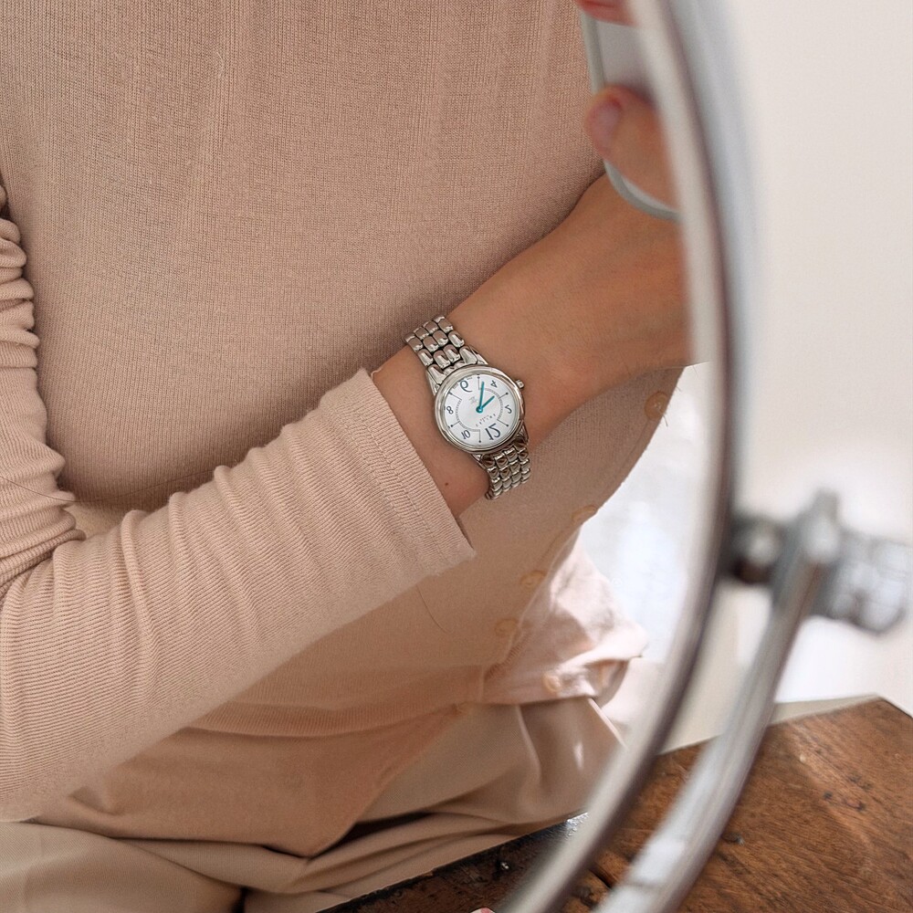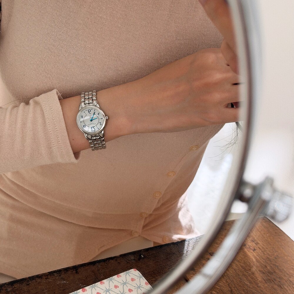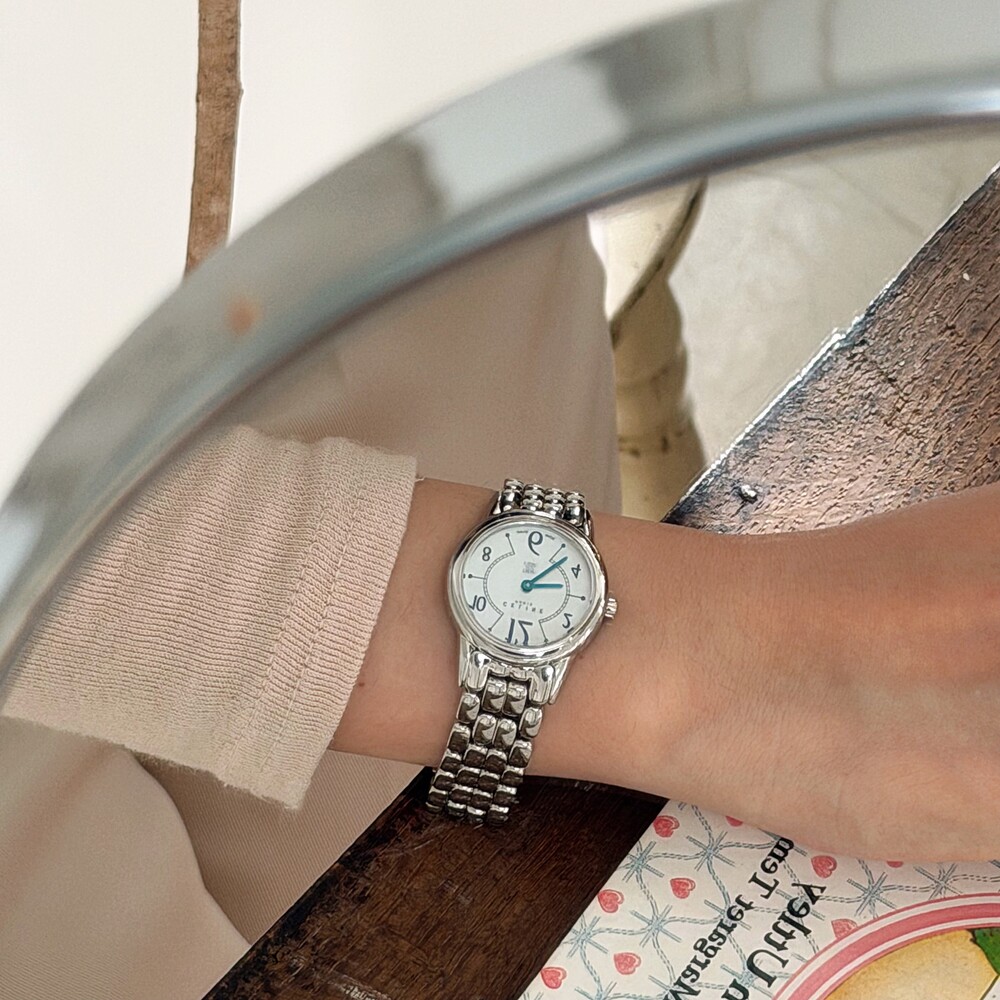 화이트 쉘 다이얼 + 블루 인덱스가 포인트입니다.