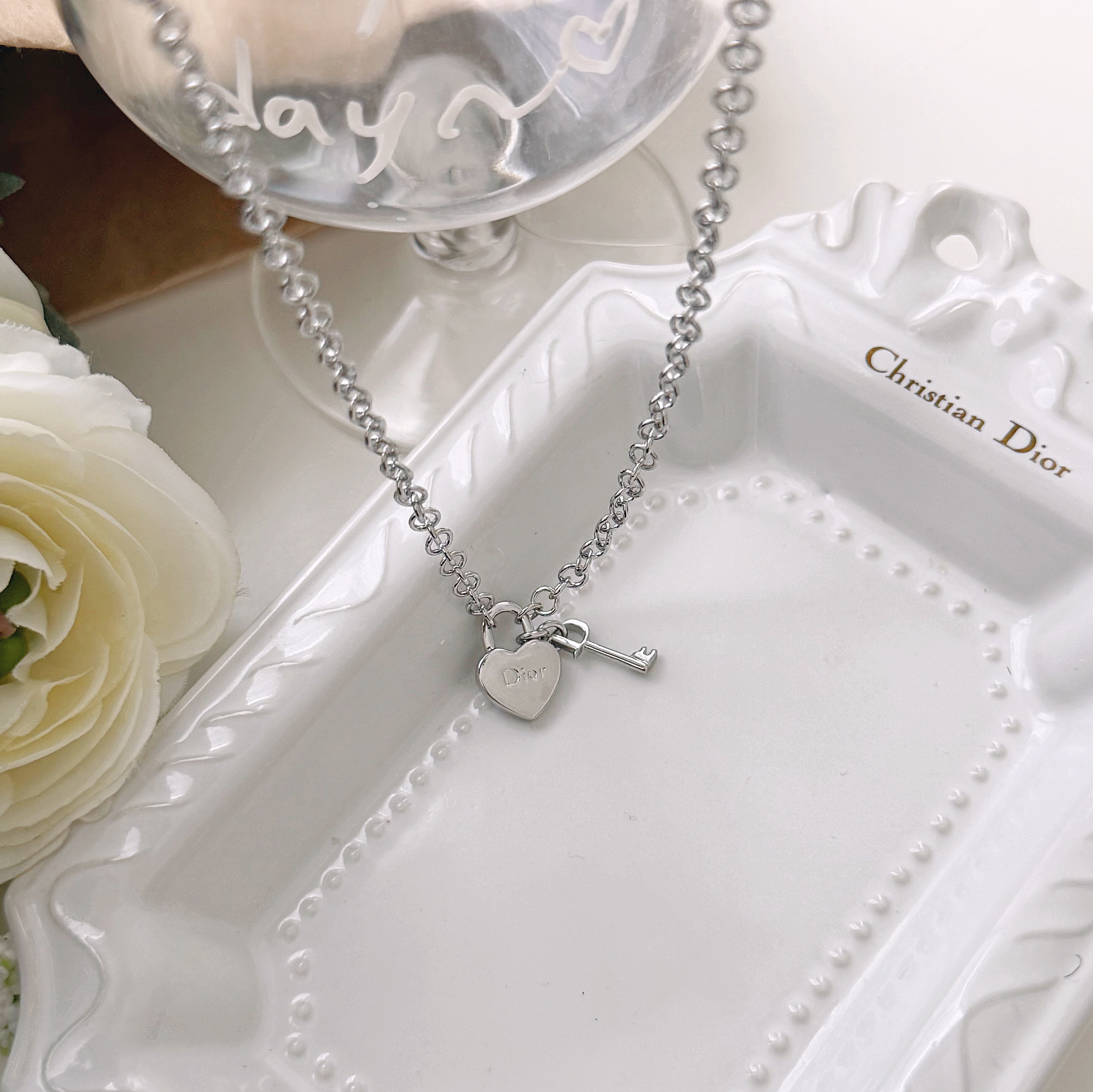 Christian Dior heart lock necklace
