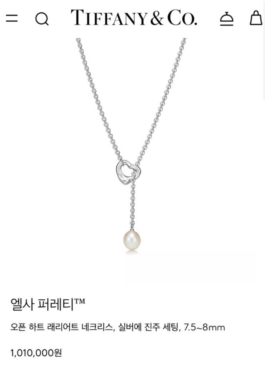 자연스레 드롭되는 진주가 포인트인 티파니앤코 하트 래리언트 목걸이 입니다🐚🤍